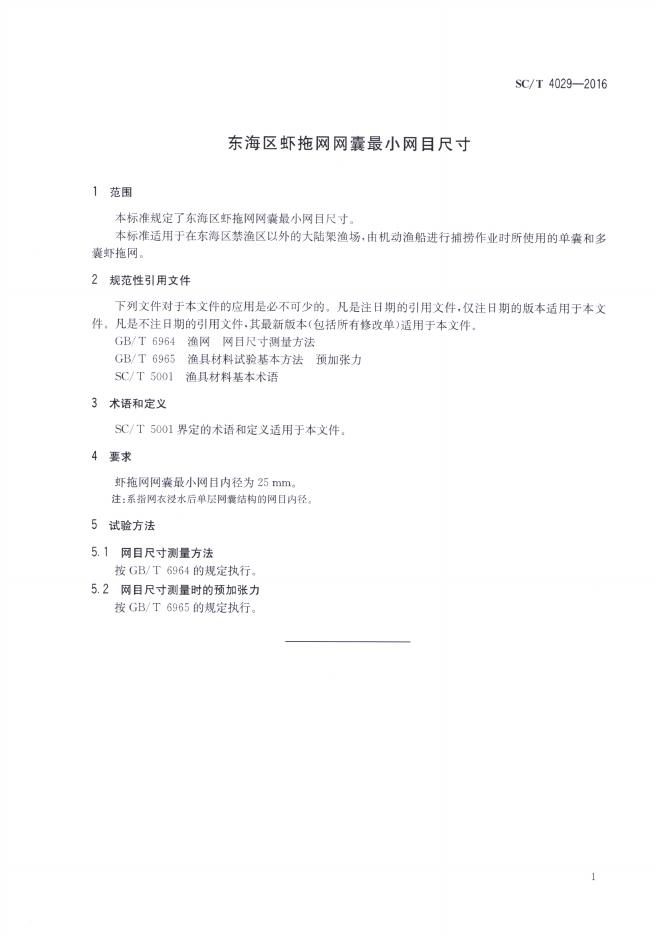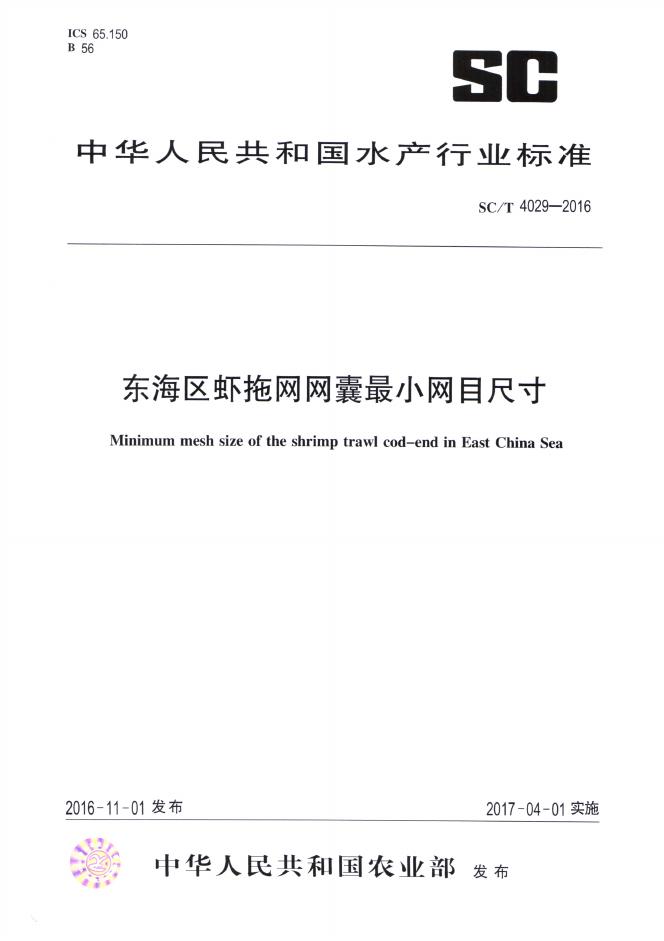 SC/T 4029-2016 东海区虾拖网网囊最小网目尺寸
