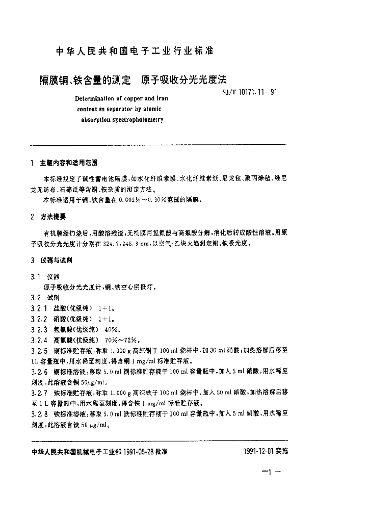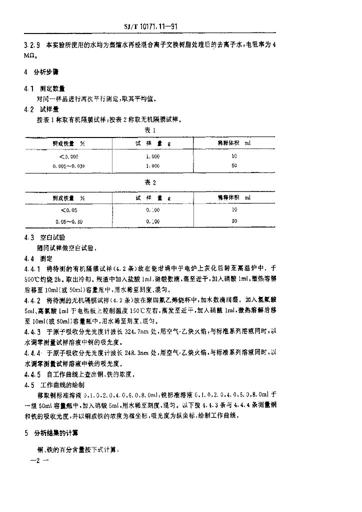 SJ/T 10171.11-1991 隔膜铜、铁含量的测定 原子吸收分光光度法