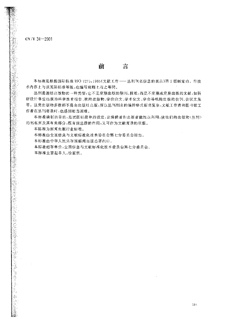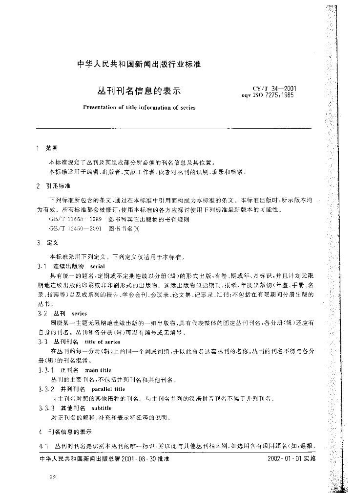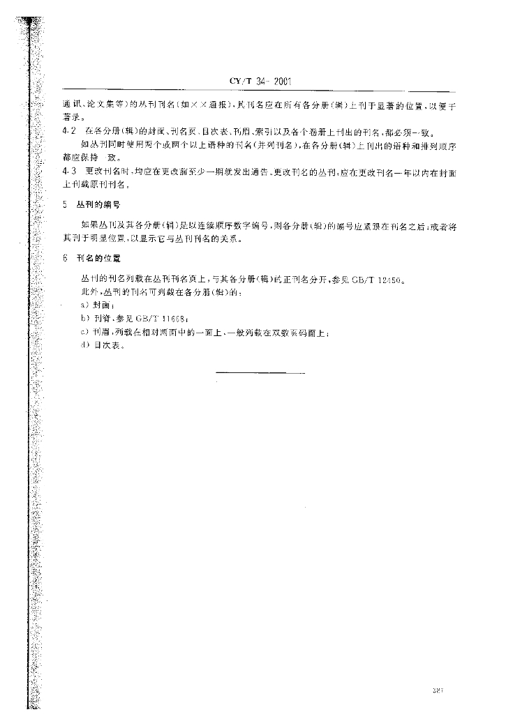CY/T 34-2001 丛刊刊名信息的表示