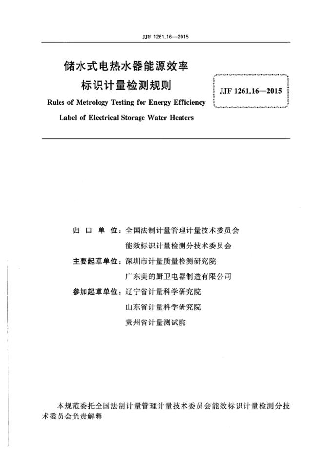 深圳市计量质量检测研究院、广东美的厨卫电器制造有限公司、辽宁省计量科学研究院、山东省计量科学研究院、贵州省计量测试院