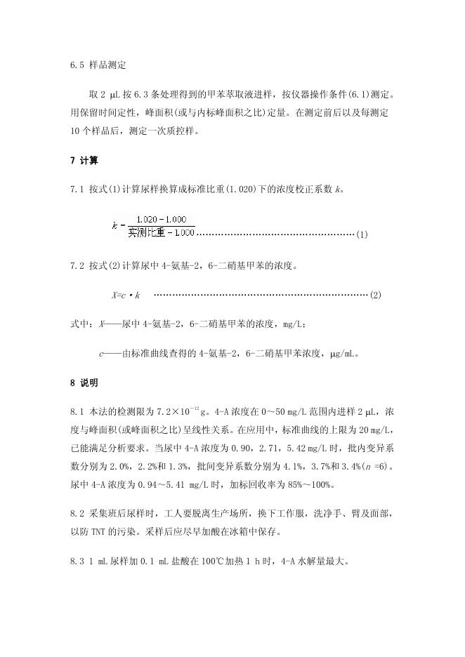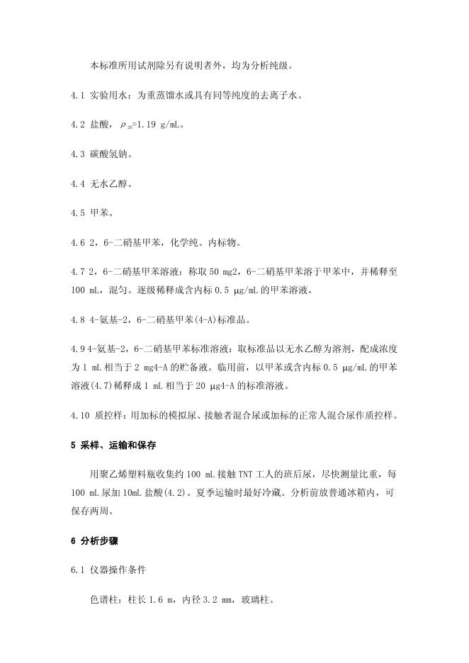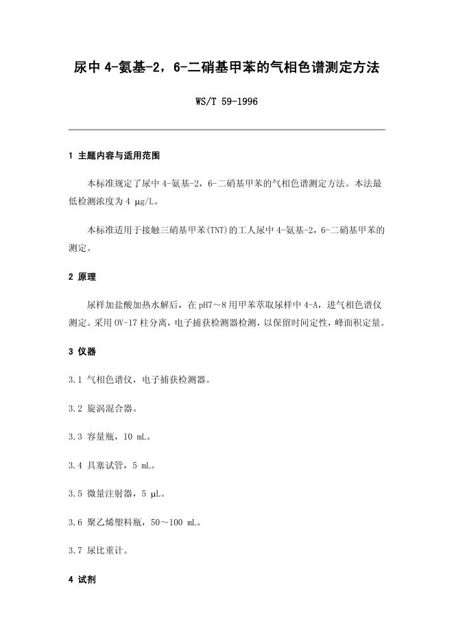 WS/T 59-1996 尿中4-氨基-2,6-二硝基甲苯的气相色谱测定方法