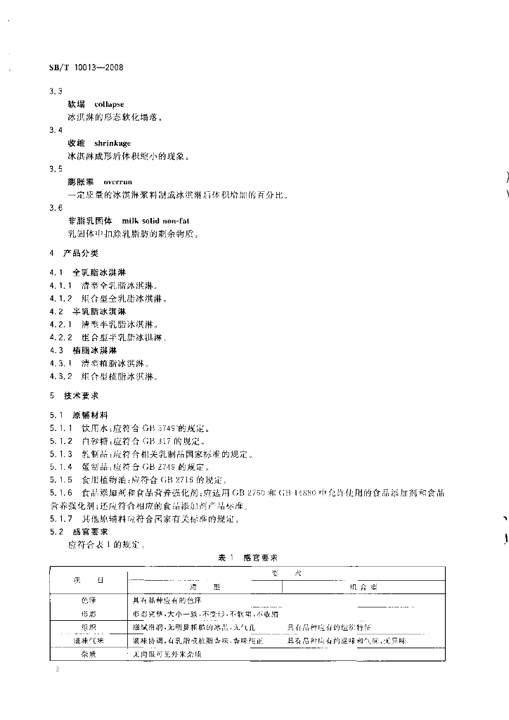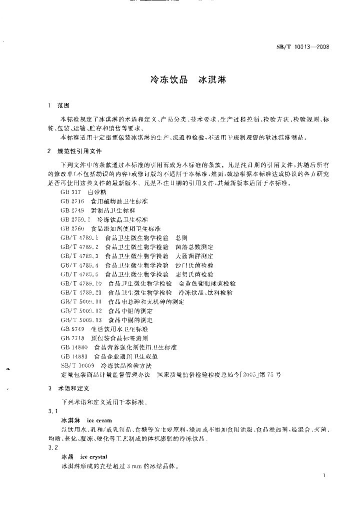 SB/T 10013-2008 冷冻饮品 冰淇淋