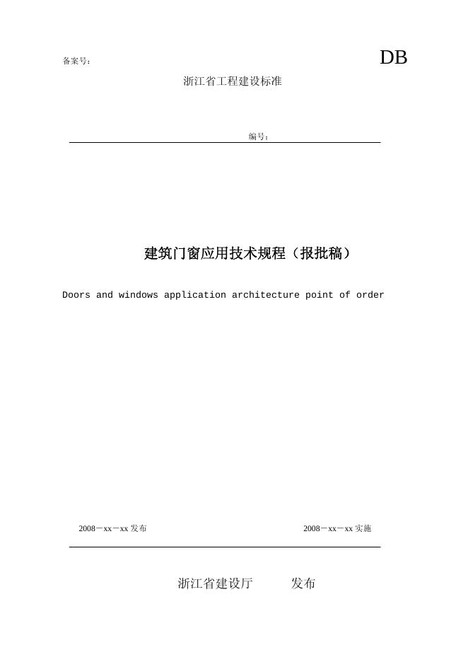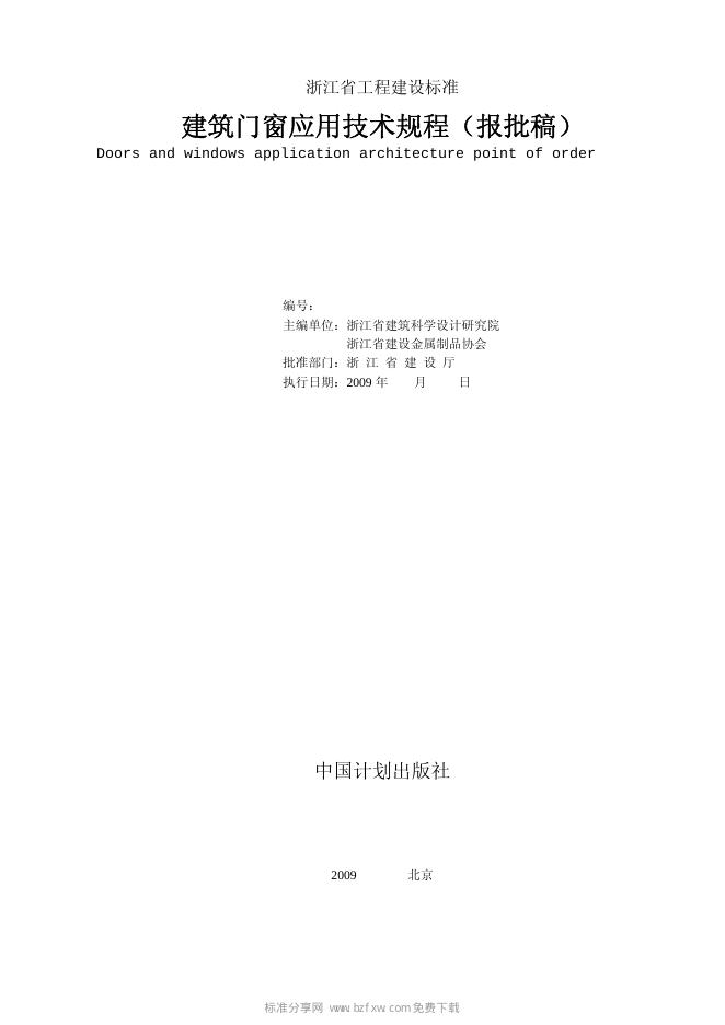 DB33/ 1064-2009 建筑门窗应用技术规程(报批稿)