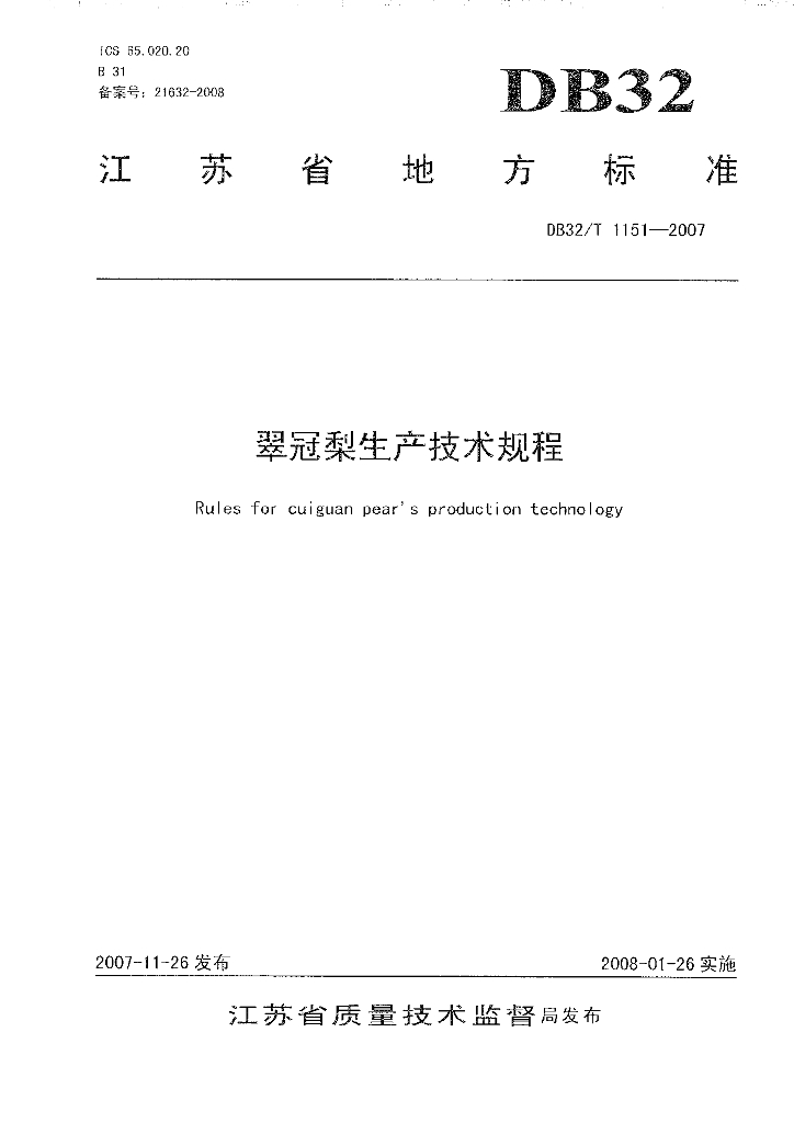 DB32/T 1151-2007 翠冠梨生产技术规程
