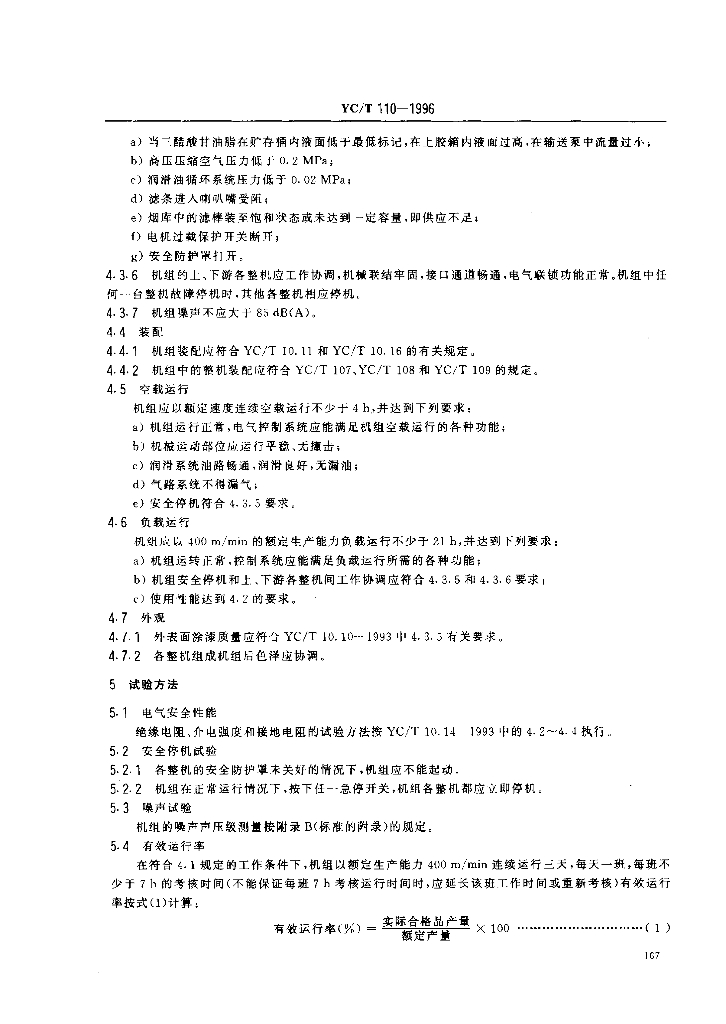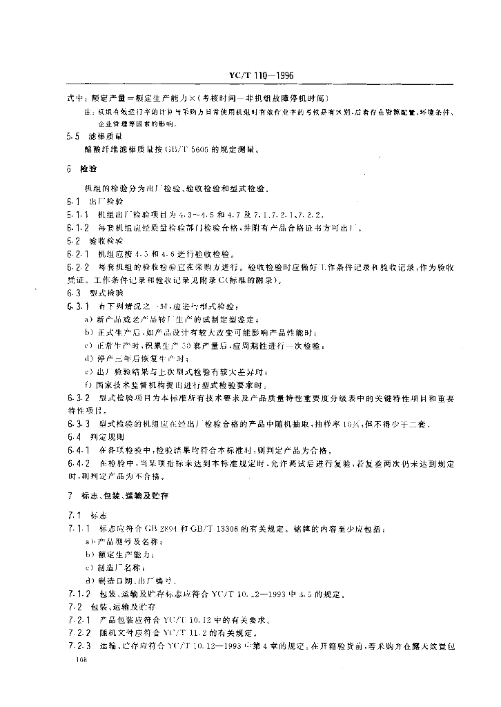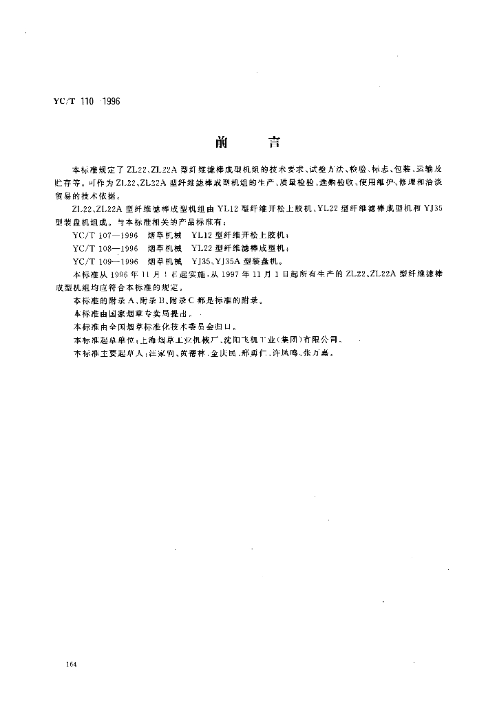 YC/T 110-1996 烟草机械 ZL22、ZL22A型纤维滤棒成型机组
