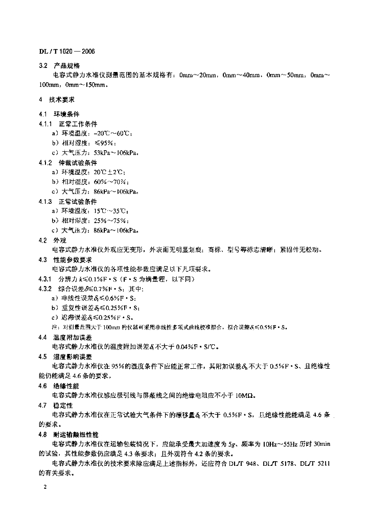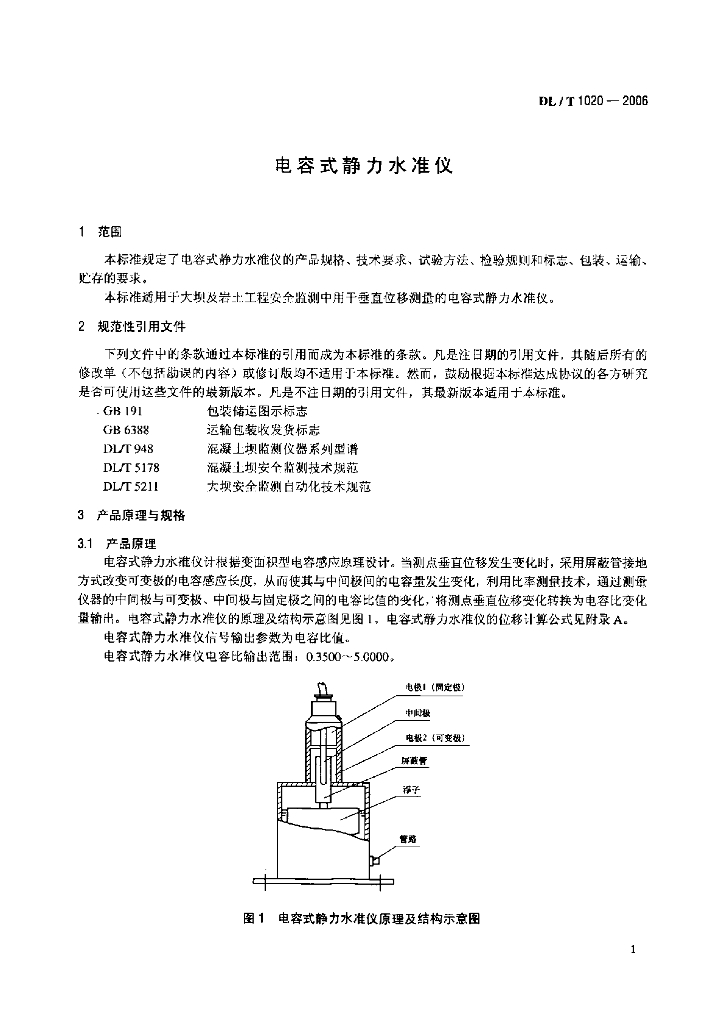 DL/T 1020-2006 电容式静力水准仪
