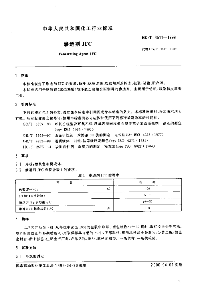 HG/T 3511-1999 渗透剂 JFC