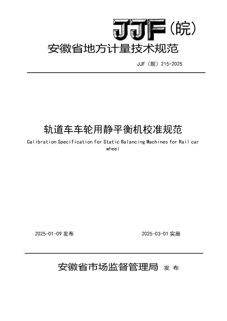 JJF(皖)215-2025 轨道车车轮用静平衡机校准规范