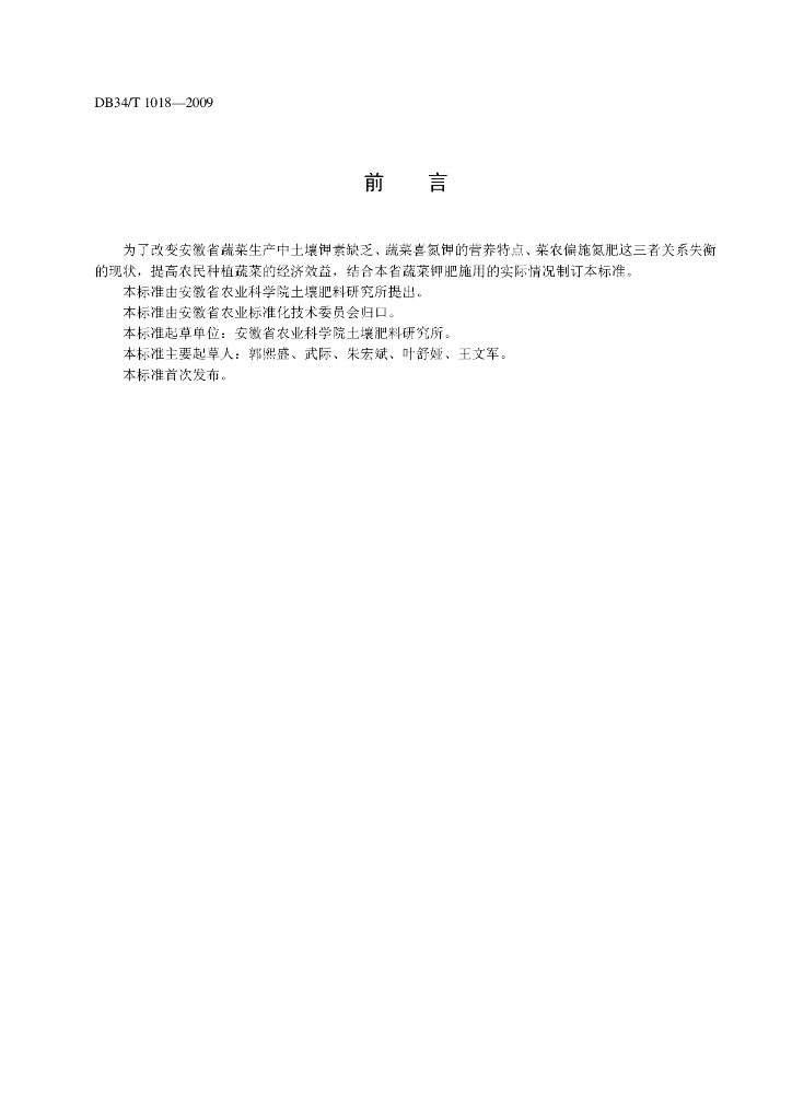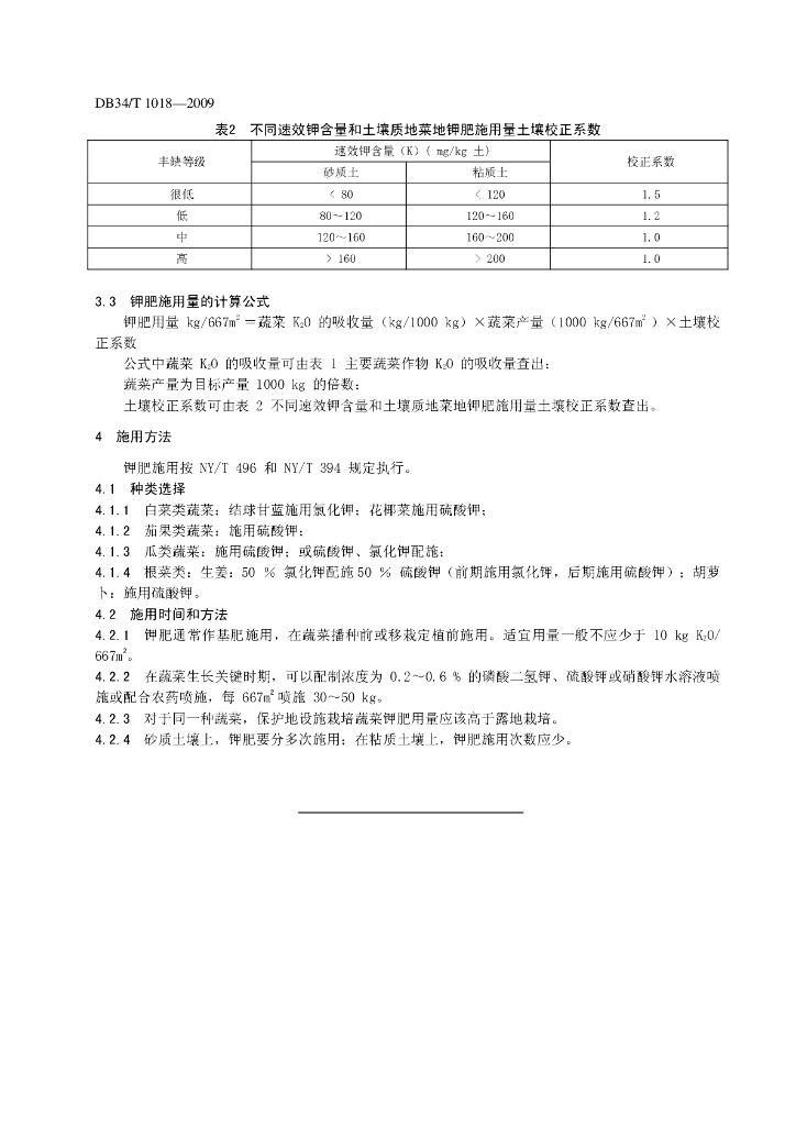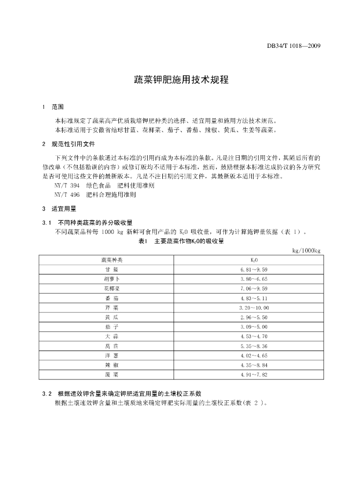 DB34/T 1018-2009 蔬菜钾肥施用技术规程