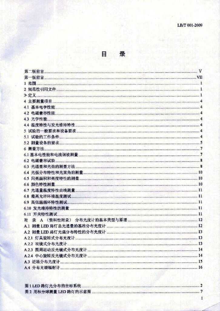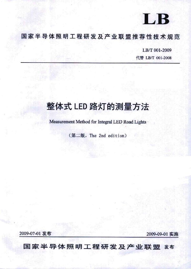 LB/T 001-2009 整体式LED路灯的测量方法