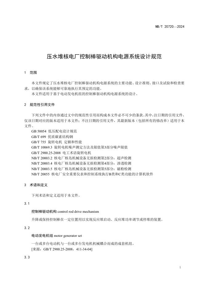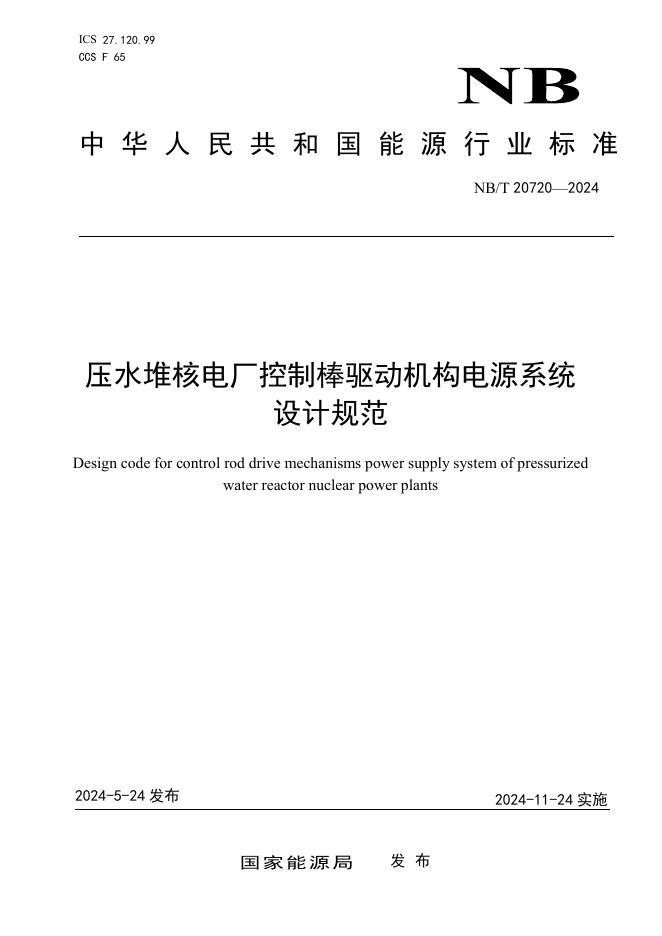 NB/T 20720-2024 压水堆核电厂控制棒驱动机构电源系统设计规范