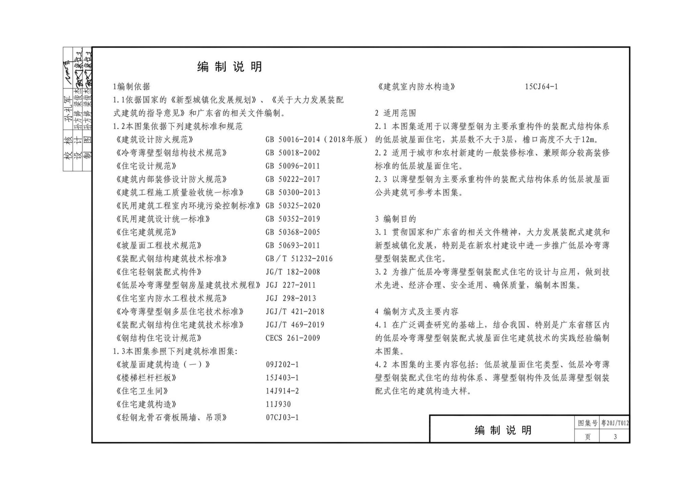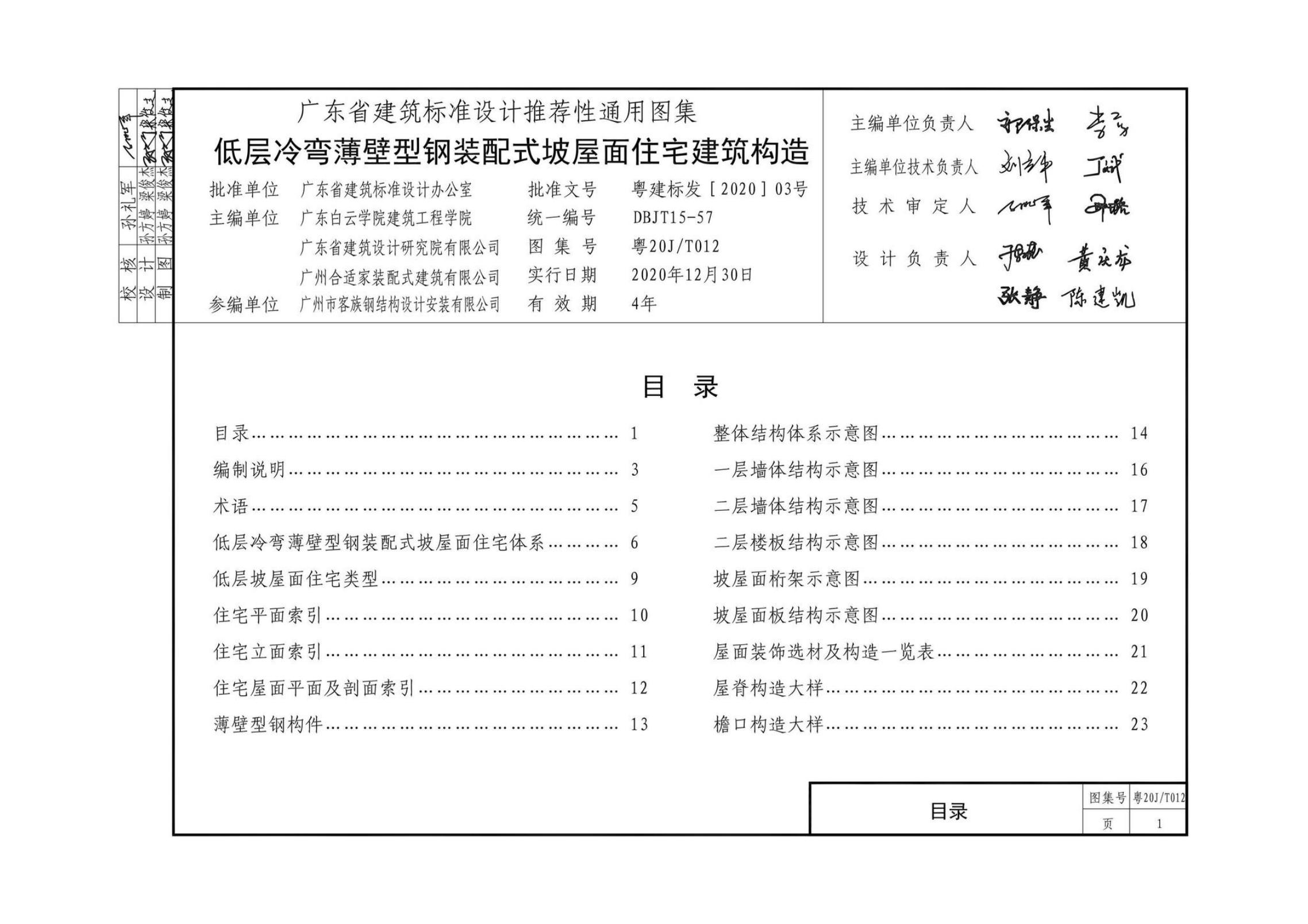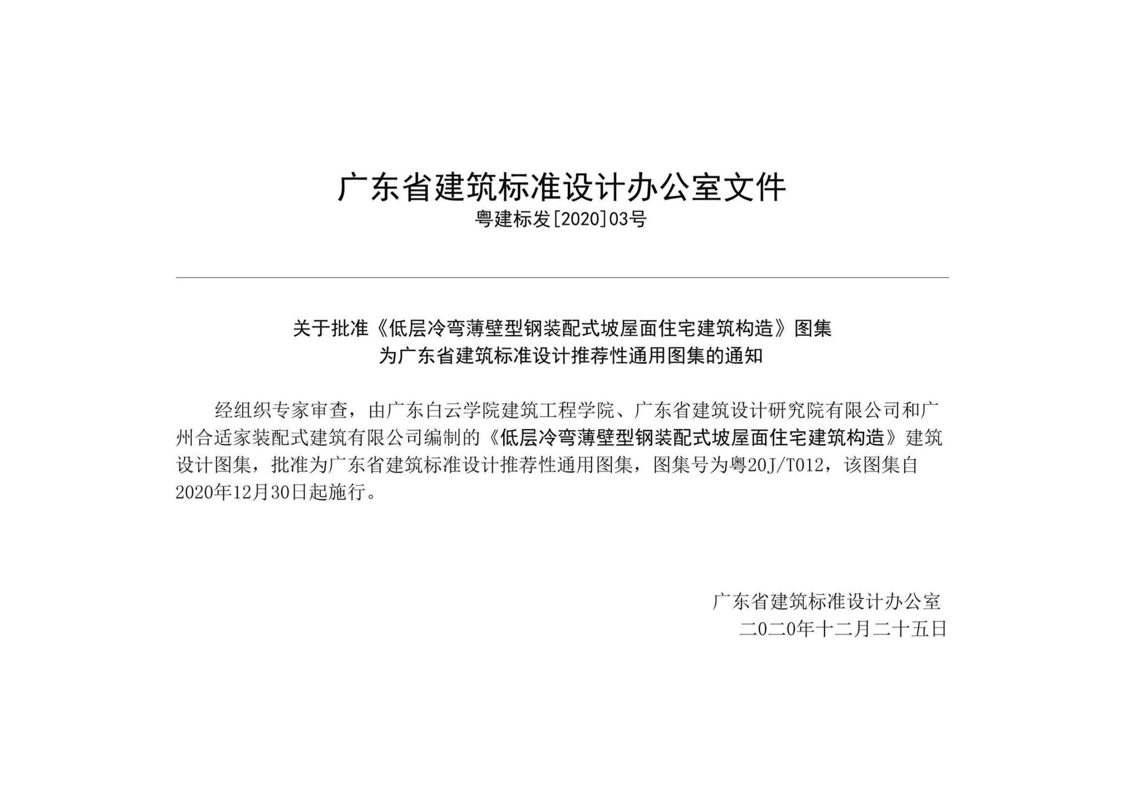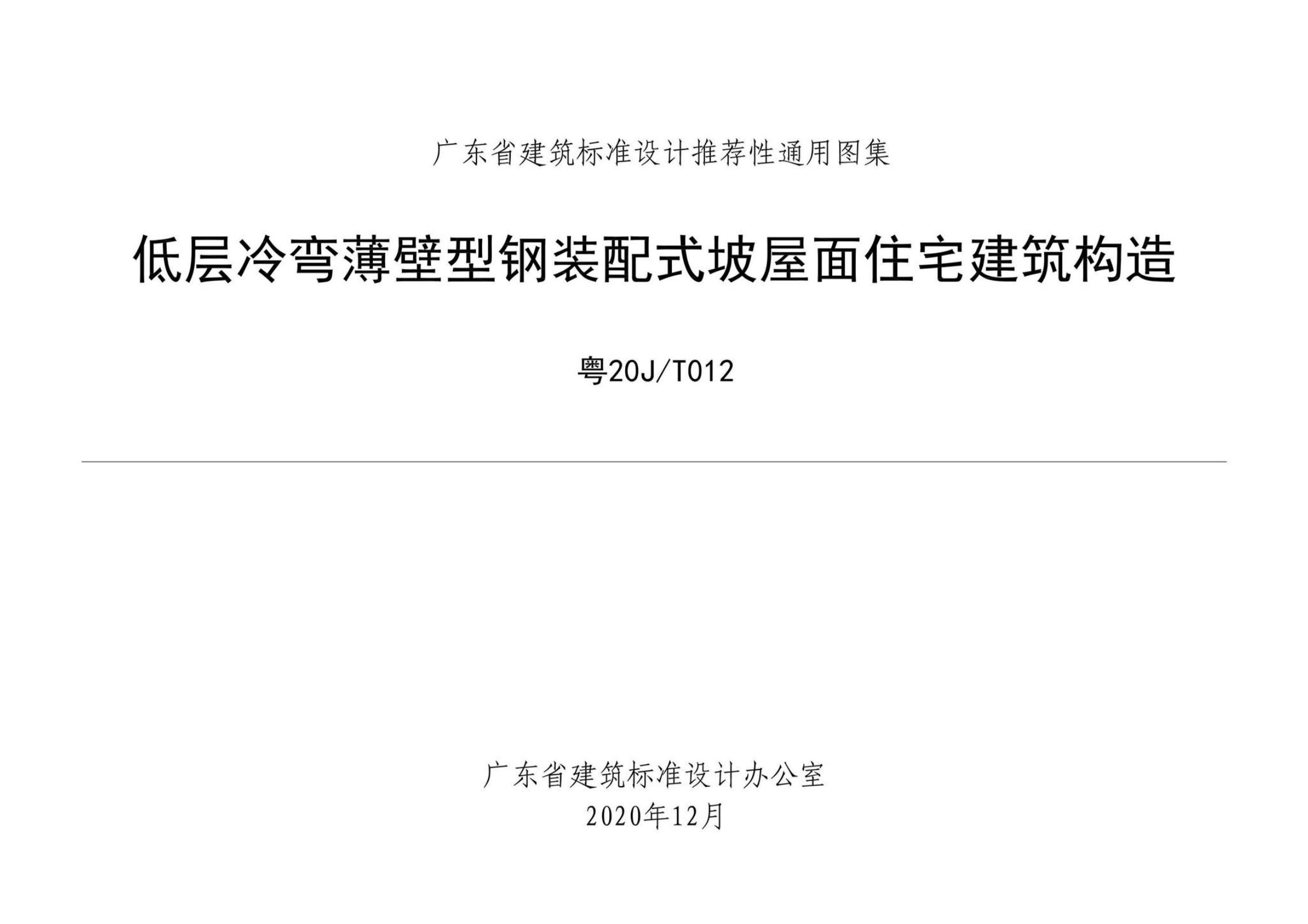粤20J/T012 低层冷弯薄壁型钢装配式坡屋面住宅建筑构造图集