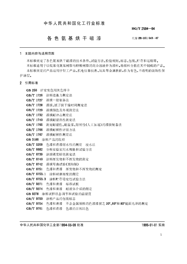 HG/T 2594-1994 各色氨基烘干磁漆
