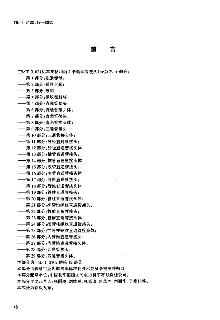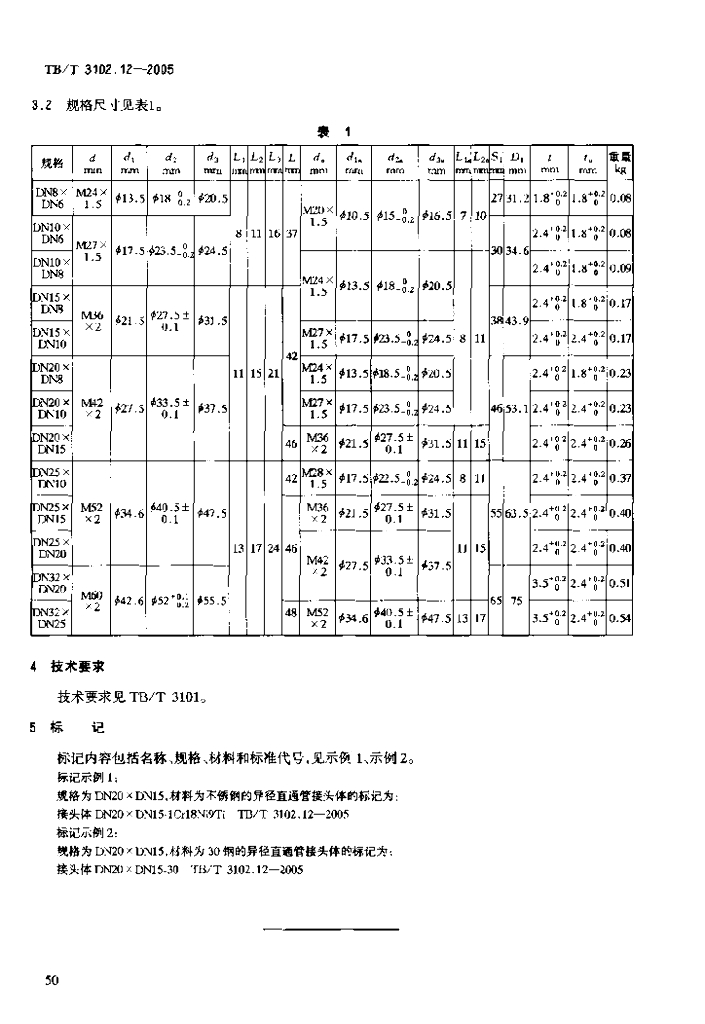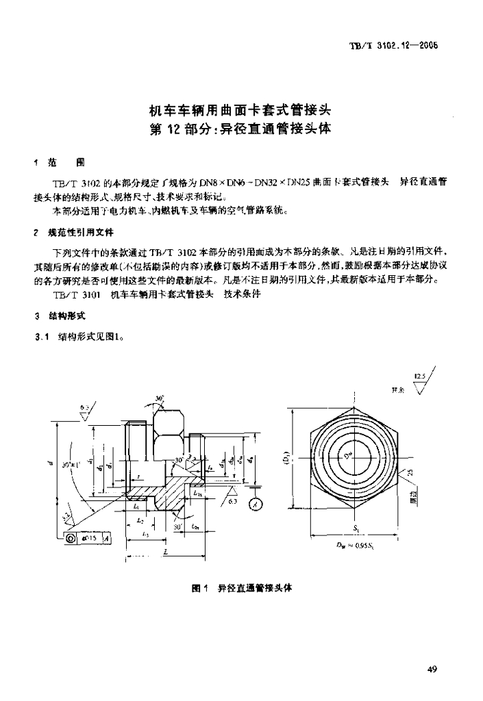 TB/T 3102.12-2005 机车车辆用曲面卡套式管接头 第12部分:异径直通管接头体