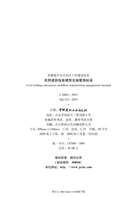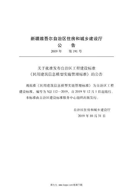XJJ 112-2019 民用建筑信息模型实施管理标准