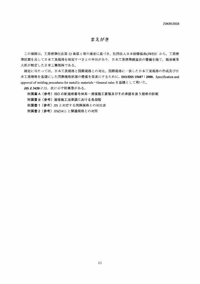 JIS Z3421-1-2003 金属材料焊接程序规范及认可 电弧焊接程序规