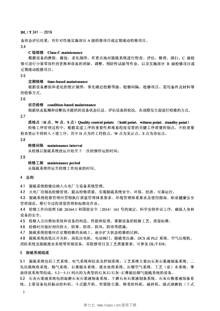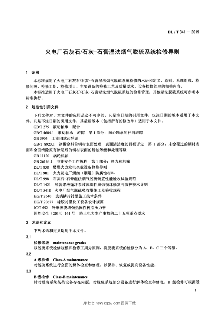 DL/T 341-2019 火电厂石灰石 石灰—石膏湿法烟气脱硫系统检修导则