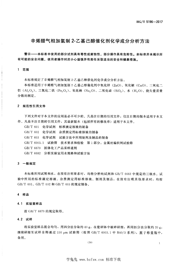 HG/T 5196-2017 辛烯醛气相加氢制2-乙基己醇催化剂化学成分分析方法