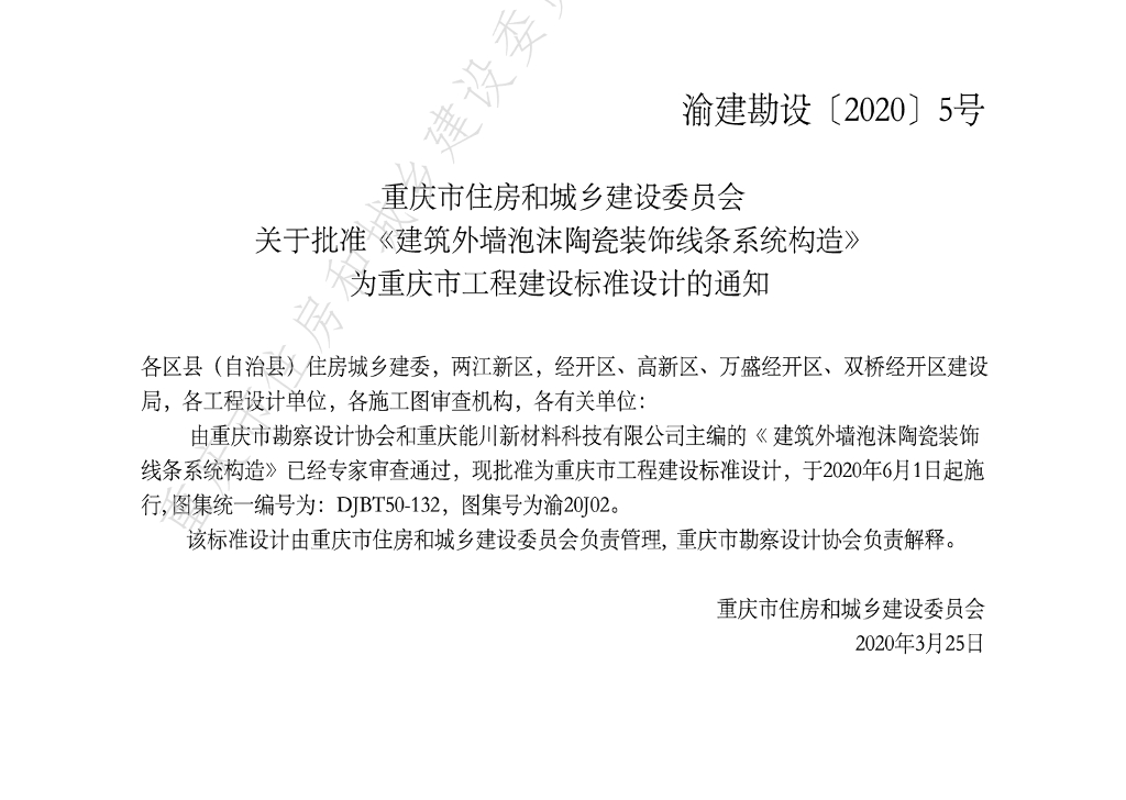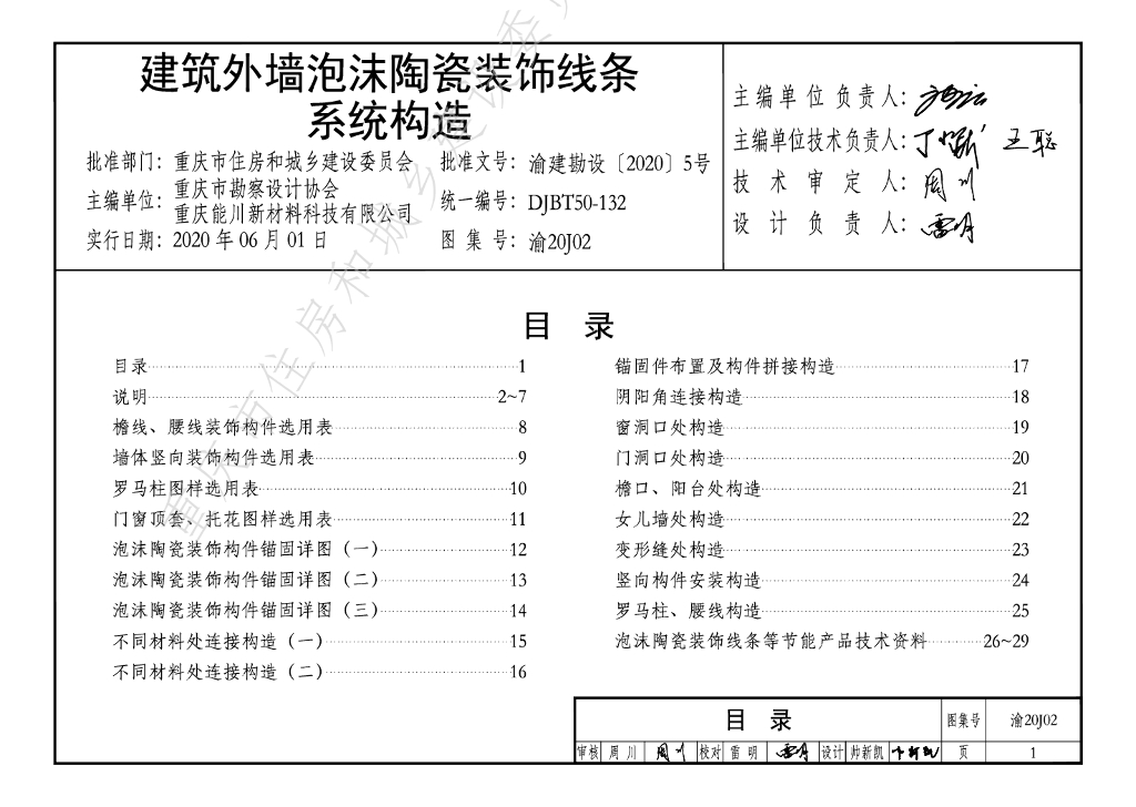 渝20J02 建筑外墙泡沫陶瓷装饰线条系统构造图集(DJBT50-132)