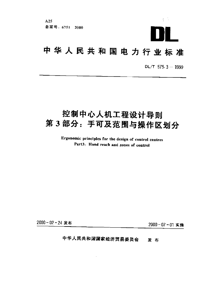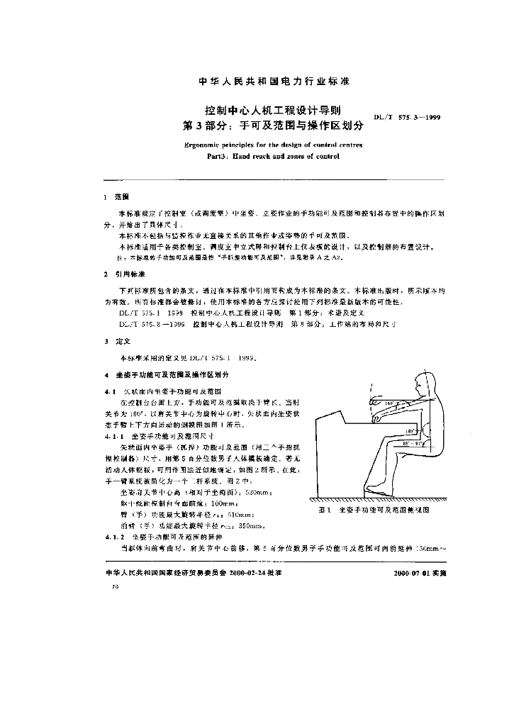 DL/T 575.3-1999 控制中心人机工程设计导则 第3部分:手可及范围与操作区划分