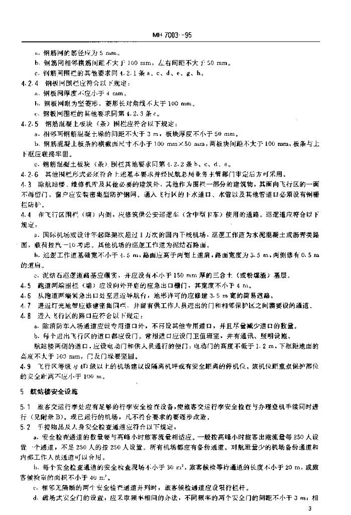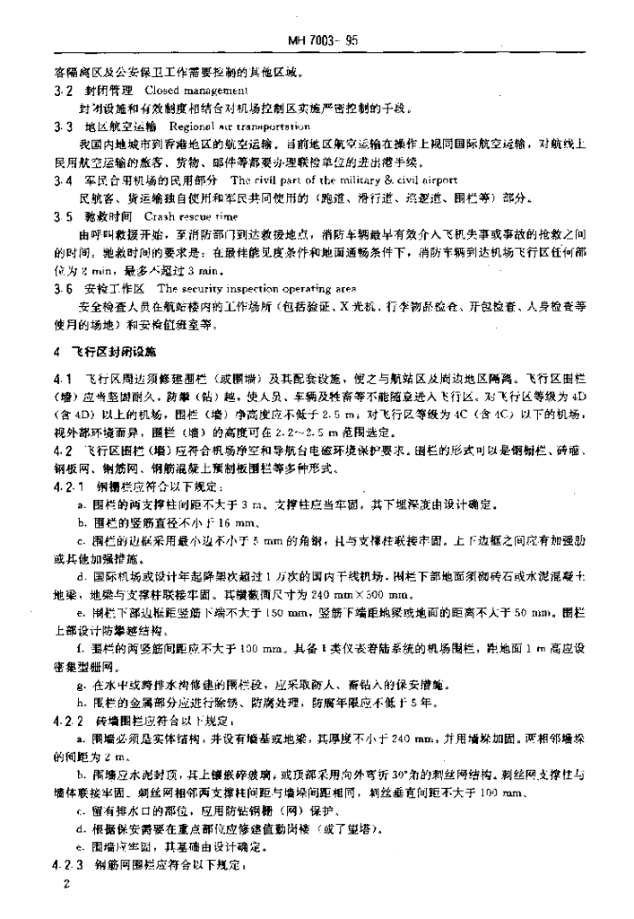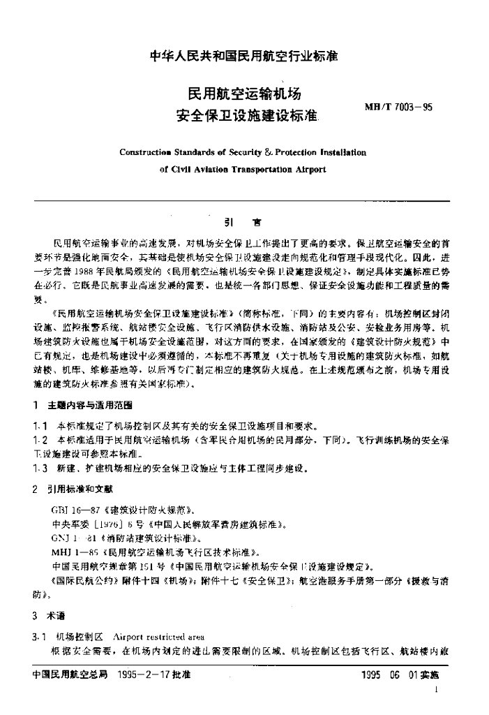 MH 7003-1995 民用航空运输机场安全保卫设施建设标准