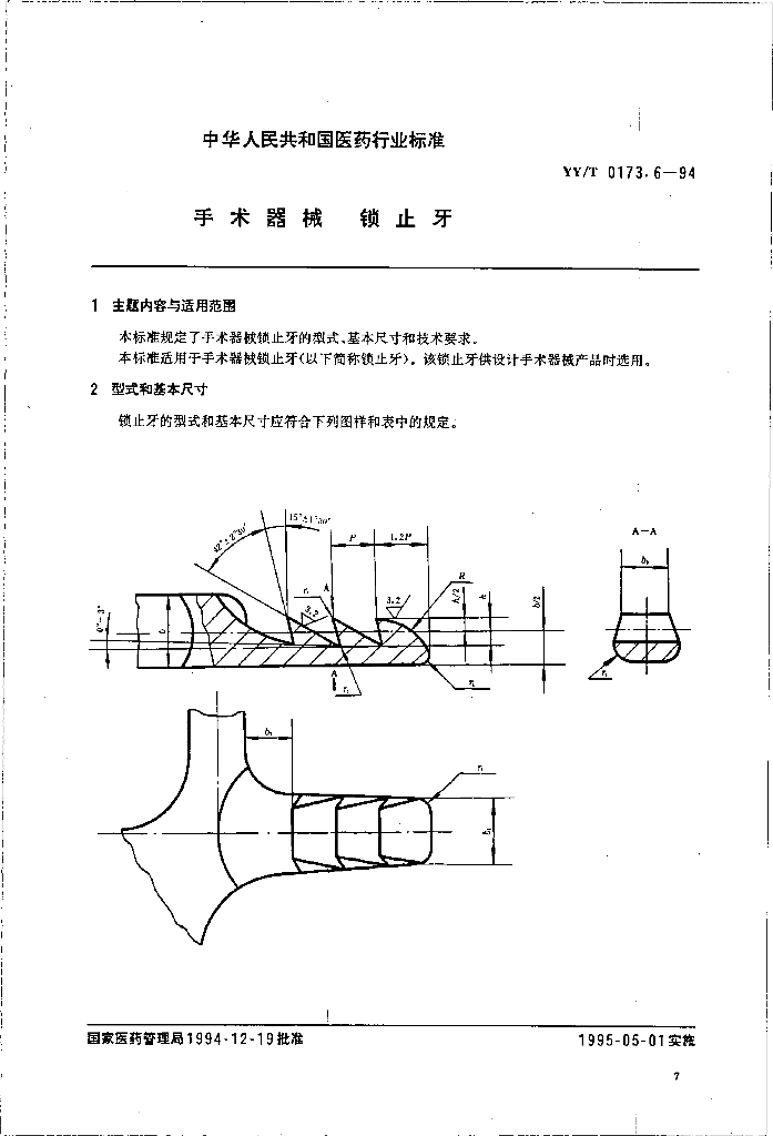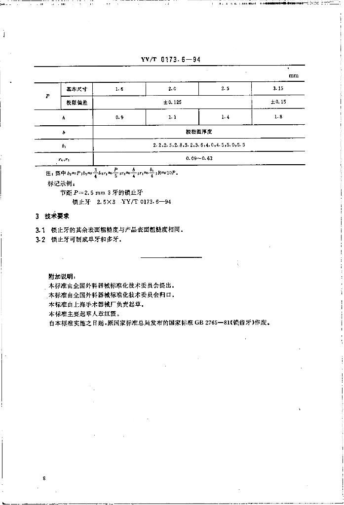 YY/T 0173.6-1994 手术器械 锁止牙