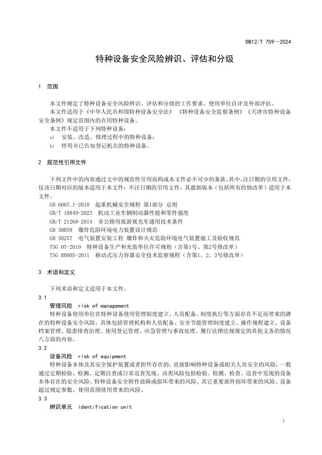 DB12/T 759-2024 特种设备安全风险辨识、评估和分级