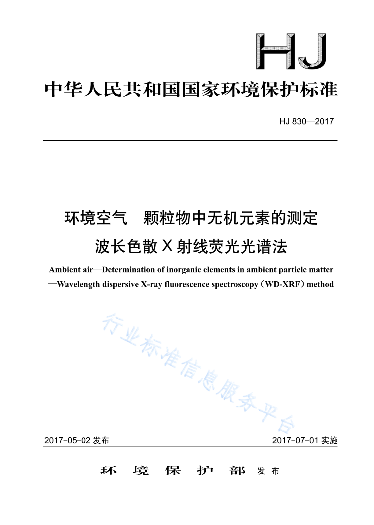 HJ 830-2017 环境空气 颗粒物中无机元素的测定 波长色散X射线荧光光谱法