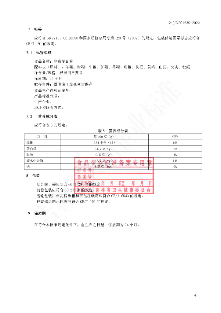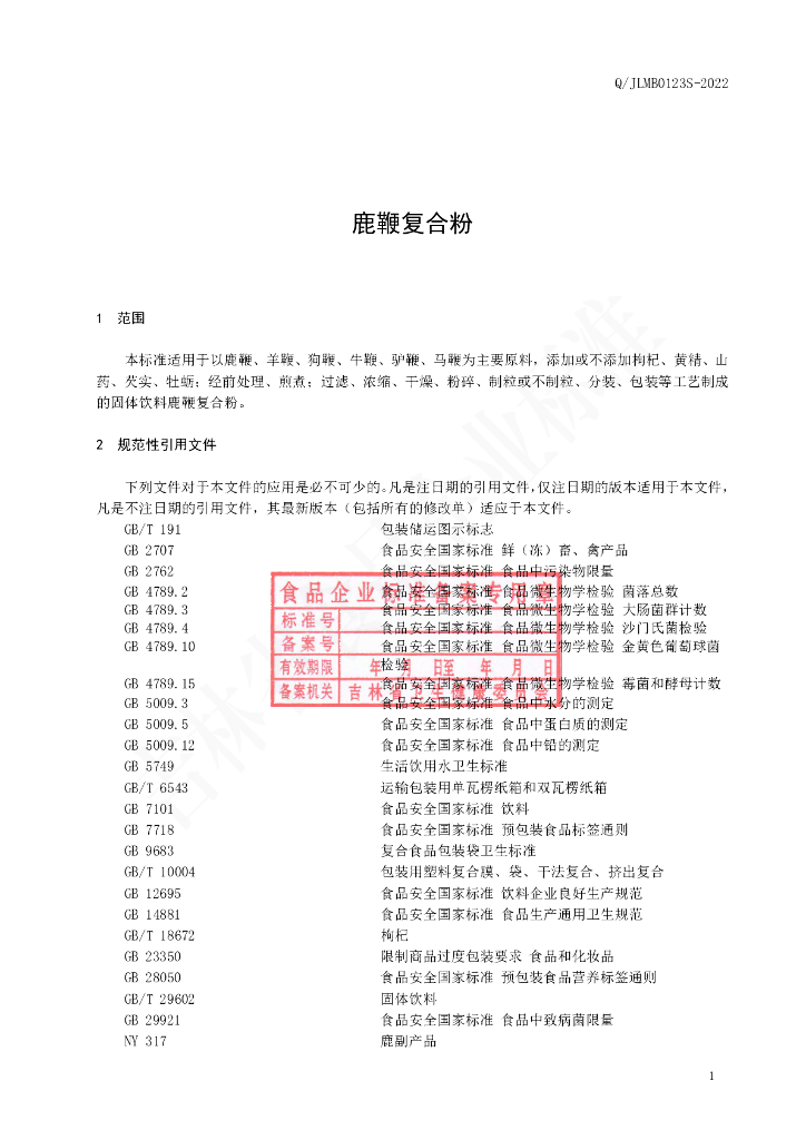 Q/JLMB 0123S-2022 鹿鞭复合粉