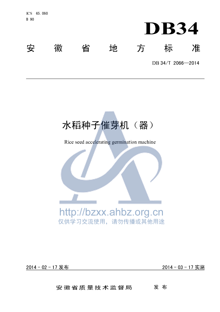 DB34/T 2066-2014 水稻种子催芽机(器)