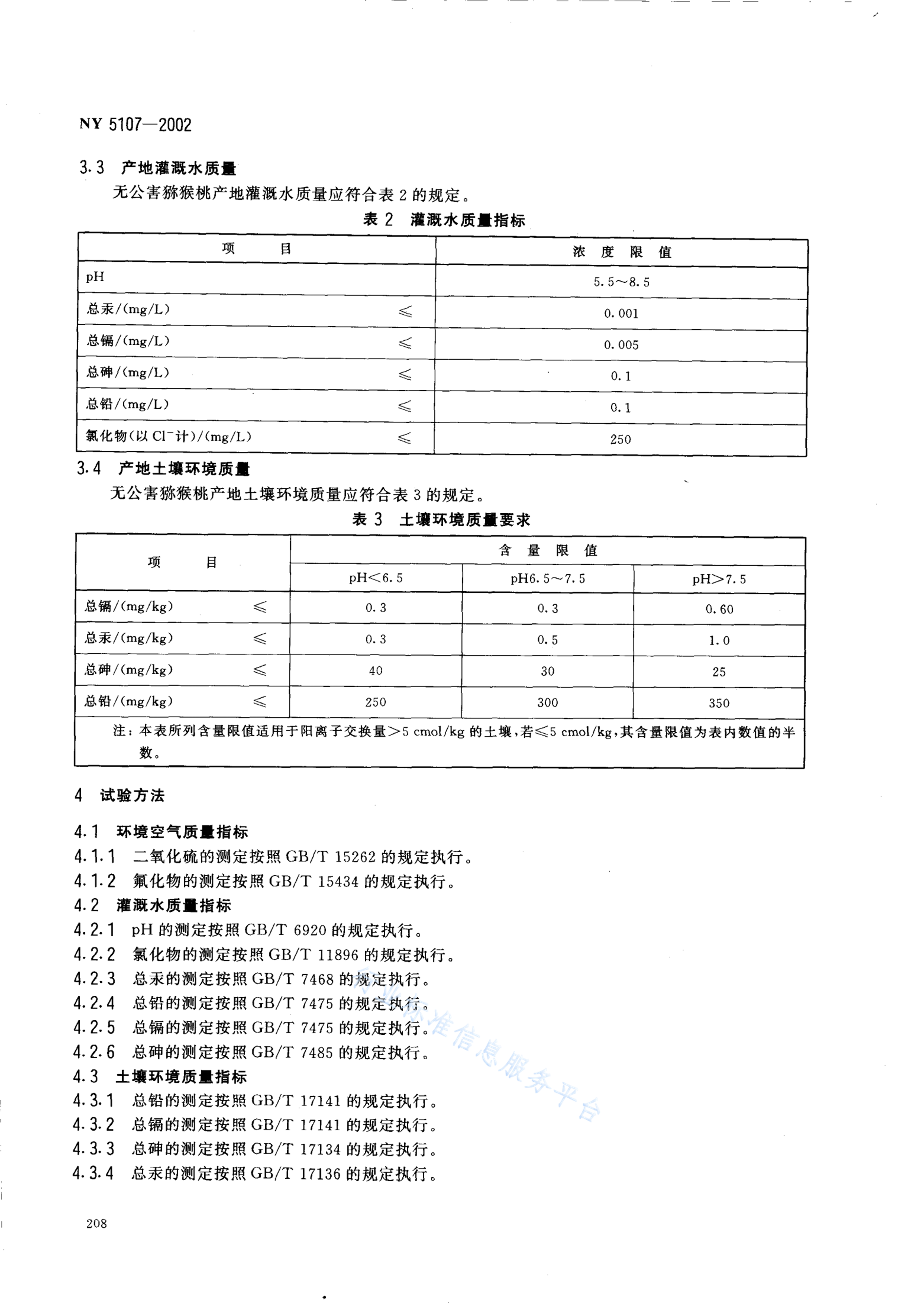 NY 5107-2002 无公害食品 猕猴桃产地环境条件