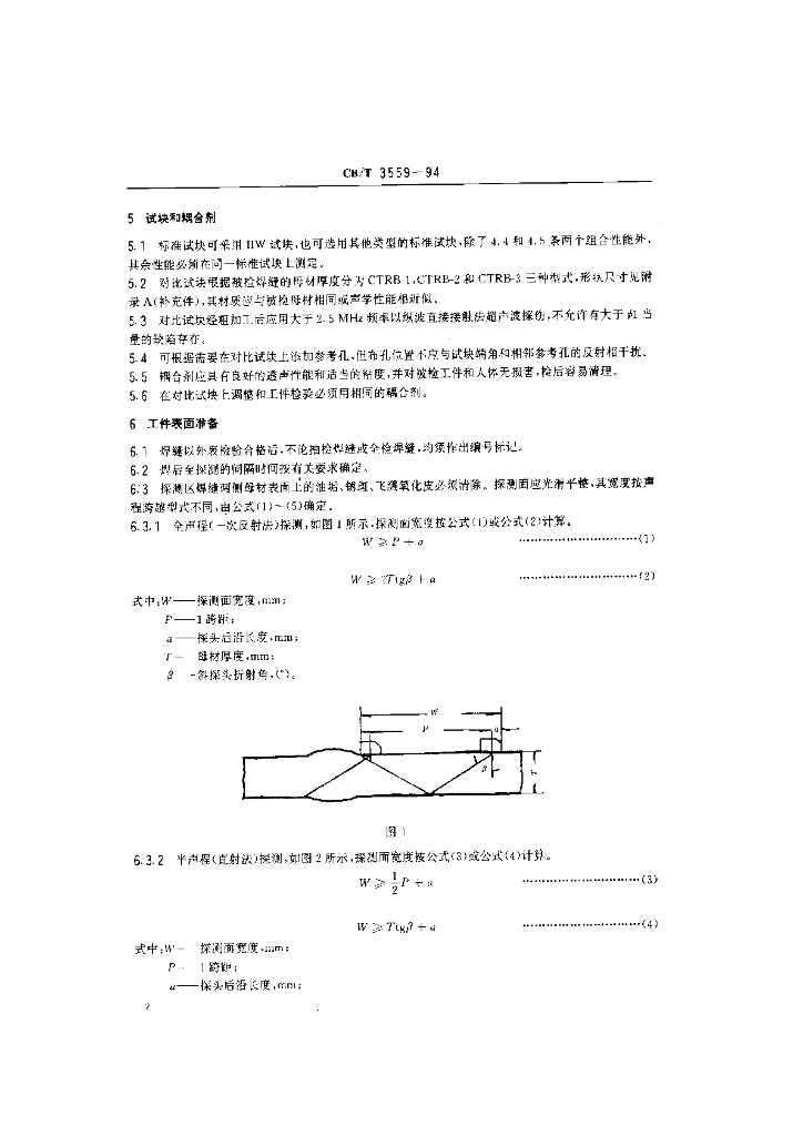 CB/T 3559-1994 船舶钢焊缝手工超声波探伤工艺和质量分级