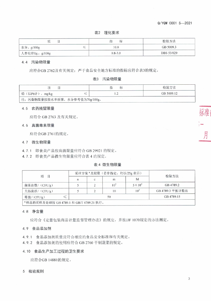 Q/YQW 0001S-2021 三七须根粉及其制品