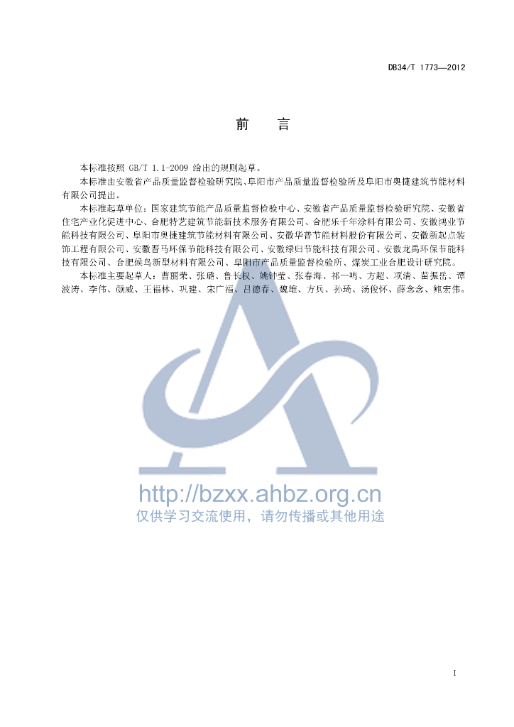 国家建筑节能产品质量监督检验中心、安徽省产品质量监督检验研究院、安徽省住宅产业化促进中心、合肥特艺建筑节能新技术服务有限公司、合肥乐千年涂料有限公司、安徽鸿业节能科技有限公司、阜阳市奥捷建筑节能材料有