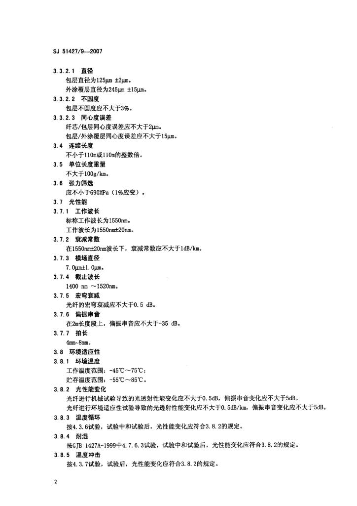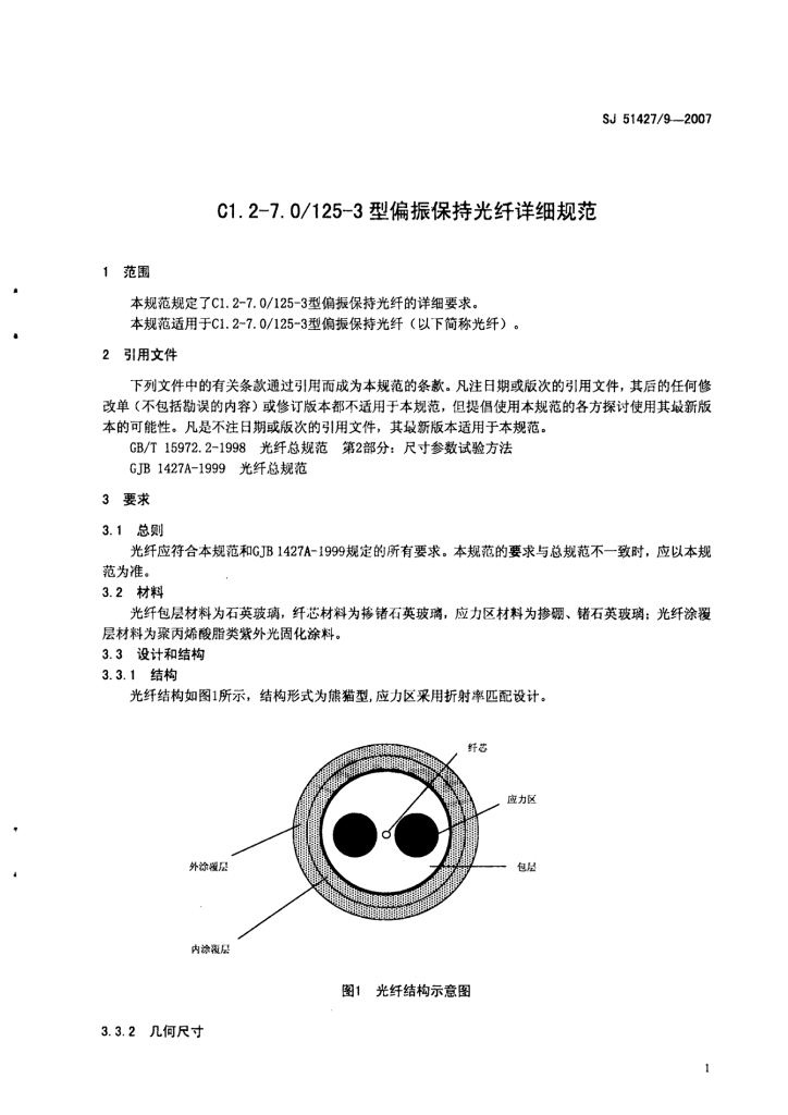 SJ 51427/9-2007 C1.2-7.0/125-3型偏振保持光纤详细规范