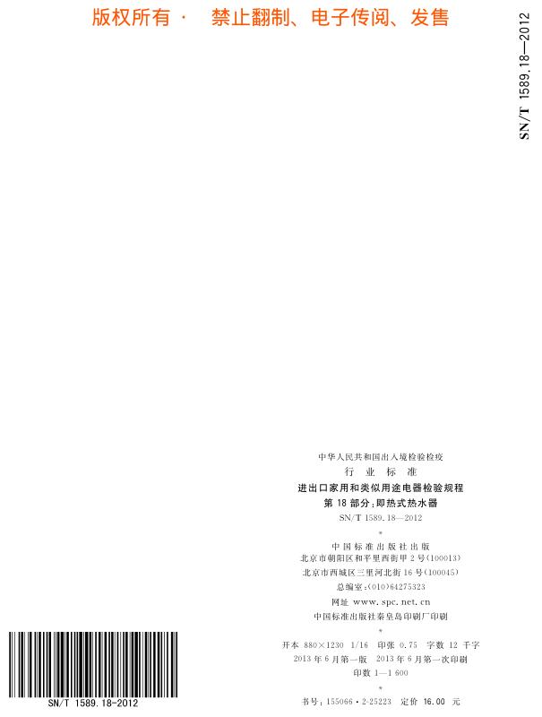 SN/T 1589.18-2012 进出口家用和类似用途电器检验规程 第18部分:即热式热水器