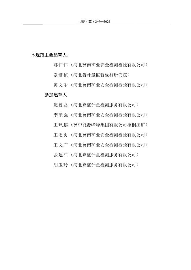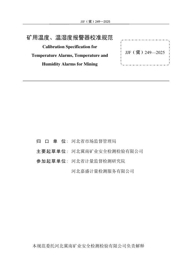 JJF(冀)249-2025 矿用温度、温湿度报警器校准规范