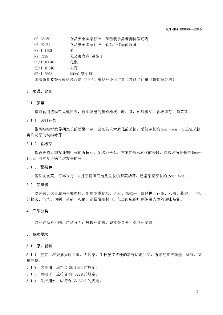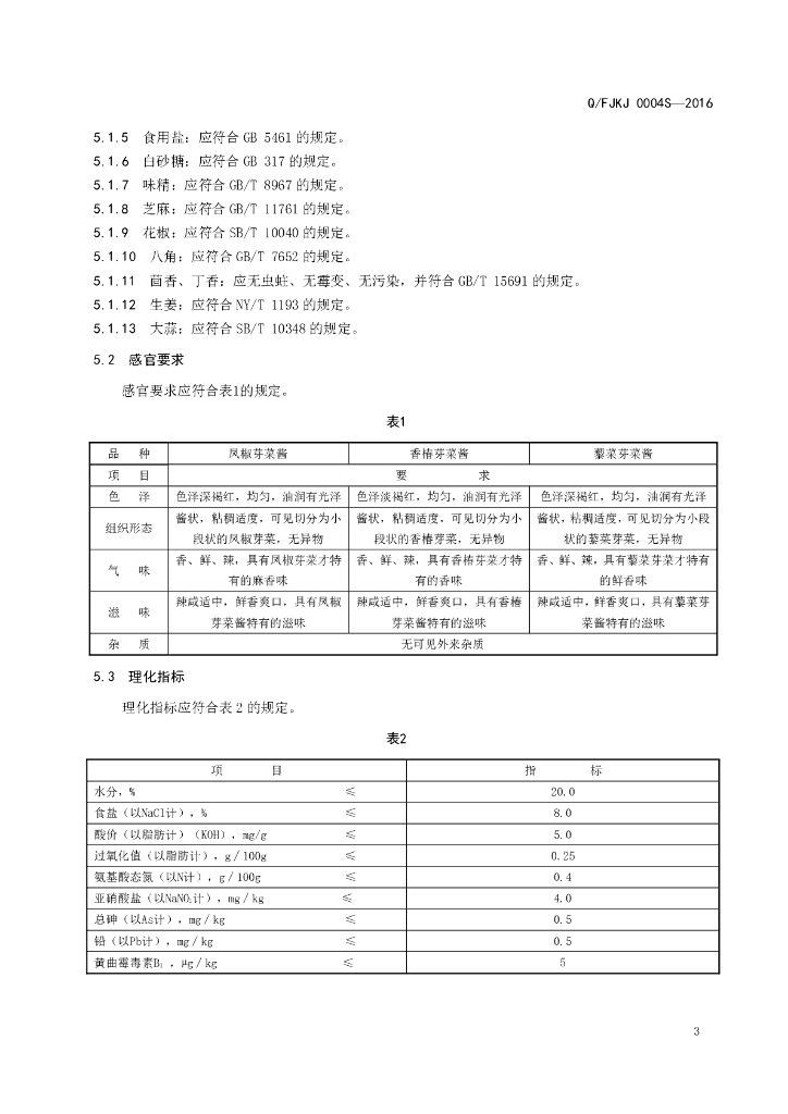 Q/FJKJ 0004S-2016 陕西雨润椒业科技开发有限公司 芽菜酱