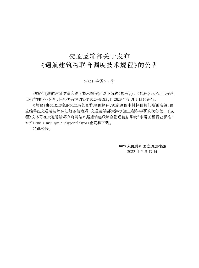 JTS/T 322-2023 通航建筑物联合调度技术规程