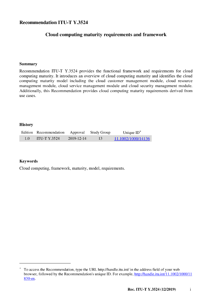 ITU-T Y.3524-2019 云计算成熟度要求和框架(英文版)