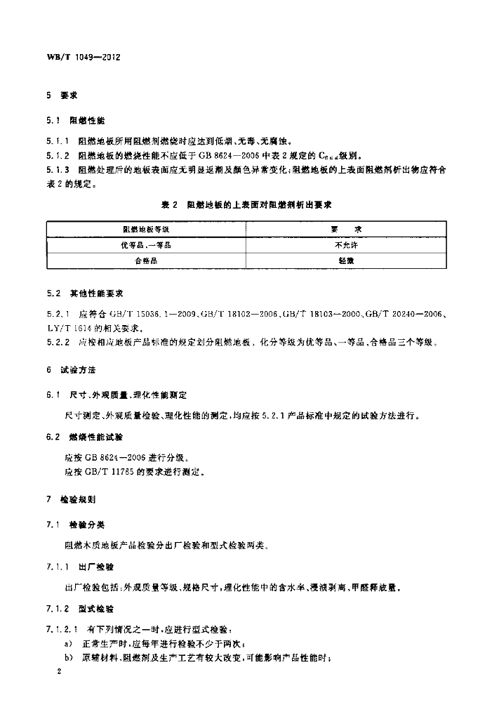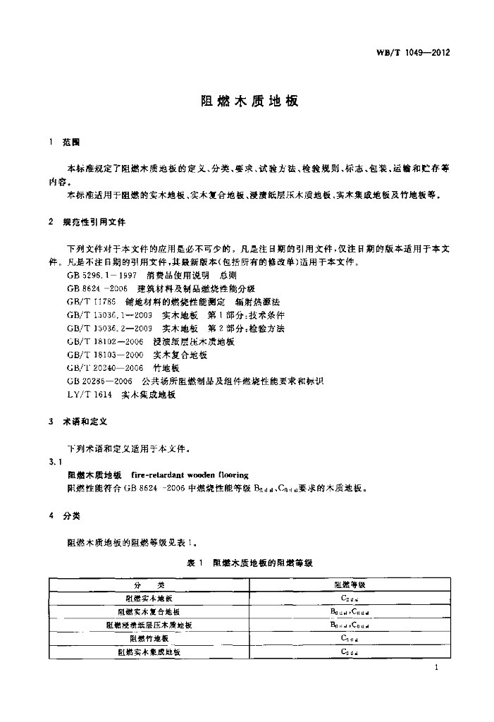 WB/T 1049-2012 阻燃木质地板