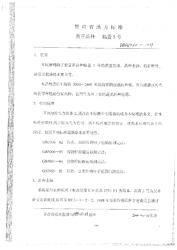 DB62/T 611-1999 蚕豆品种临蚕5号