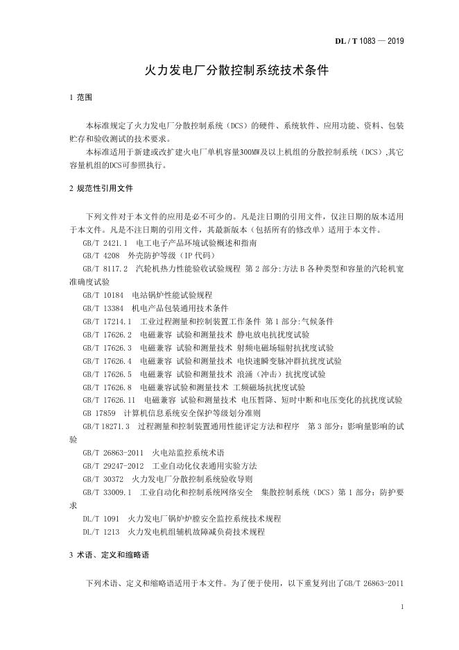 DL/T 1083-2019 火力发电厂分散控制系统技术条件