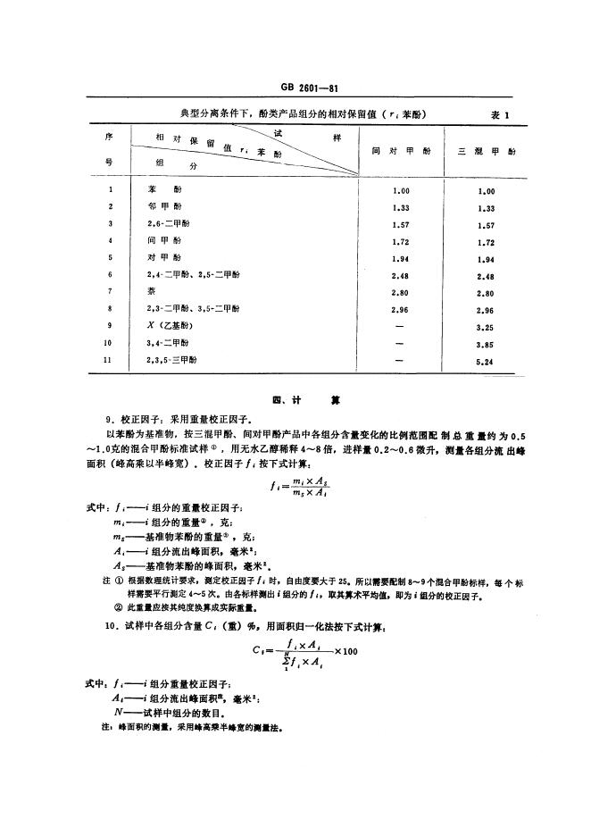 GB/T 2601-1981 酚类产品组成的气相色谱测定方法