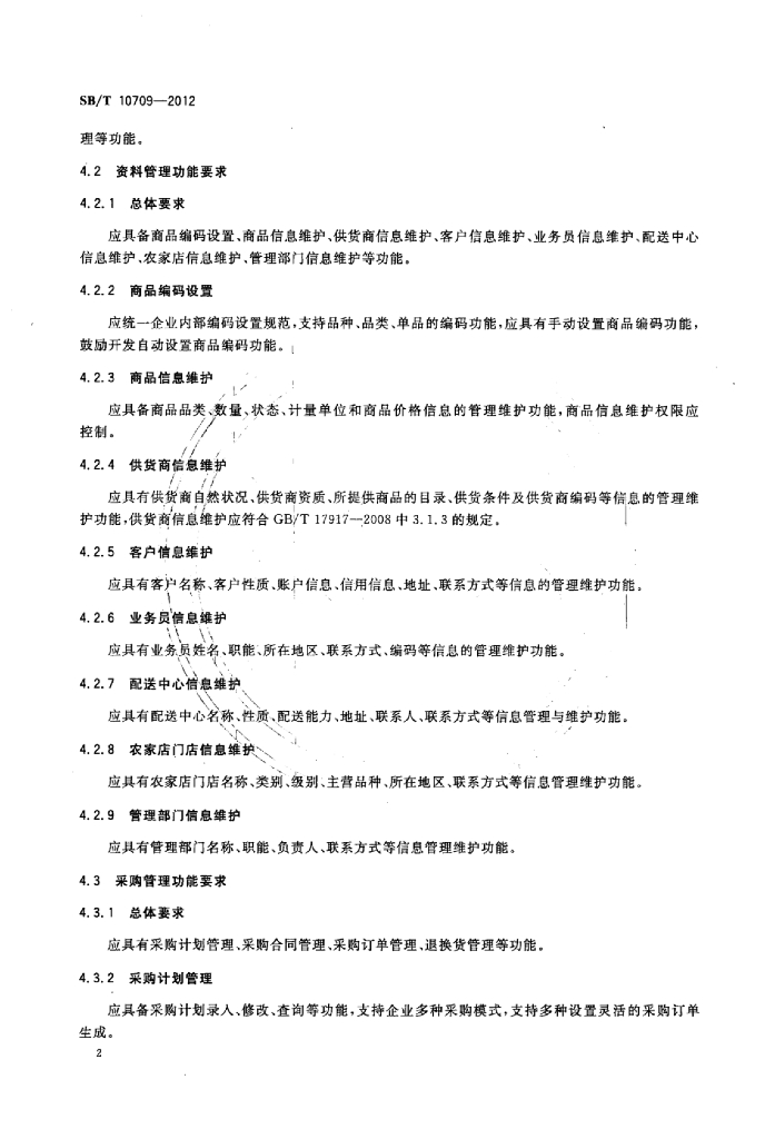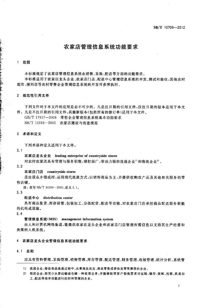 SB/T 10709-2012 农家店管理信息系统功能要求
