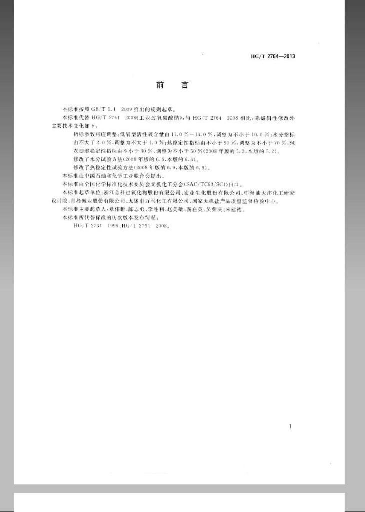 HG/T 2764-2013 代替 HG/T 2764-2008 工业过氧碳酸钠