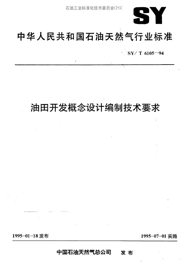 SY/T 6105-1994 油田开发概念设计编制技术要求
