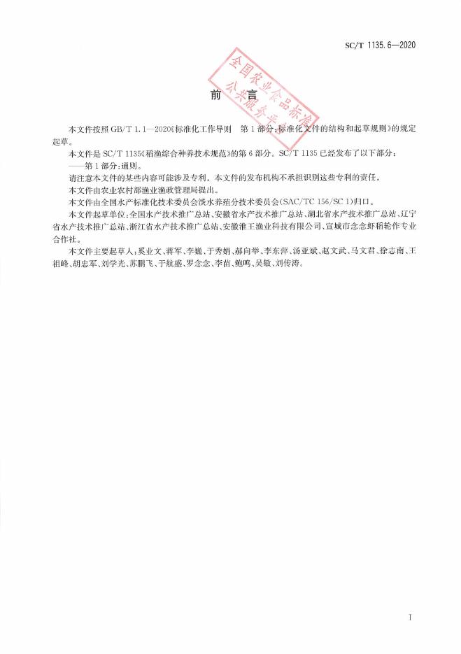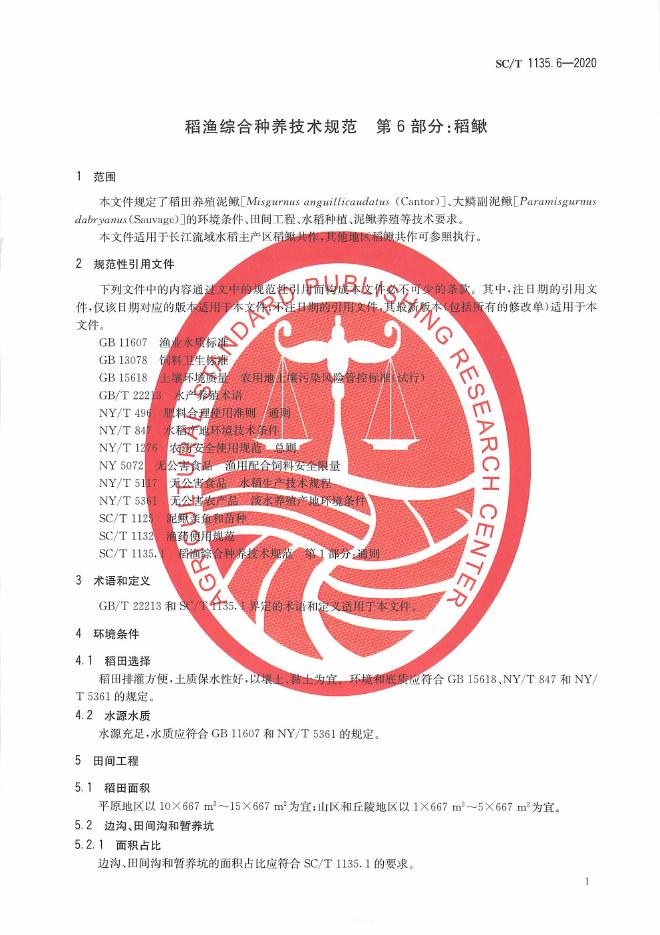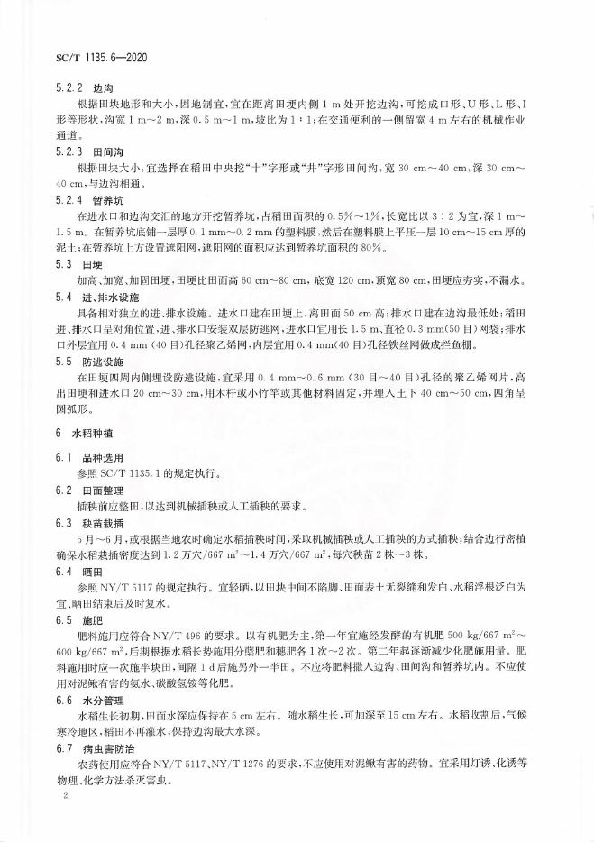 SC/T 1135.6-2020 稻渔综合种养技术规范 第6部分:稻鳅