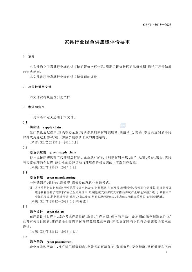 GB/T 46013-2025 家具行业绿色供应链评价要求