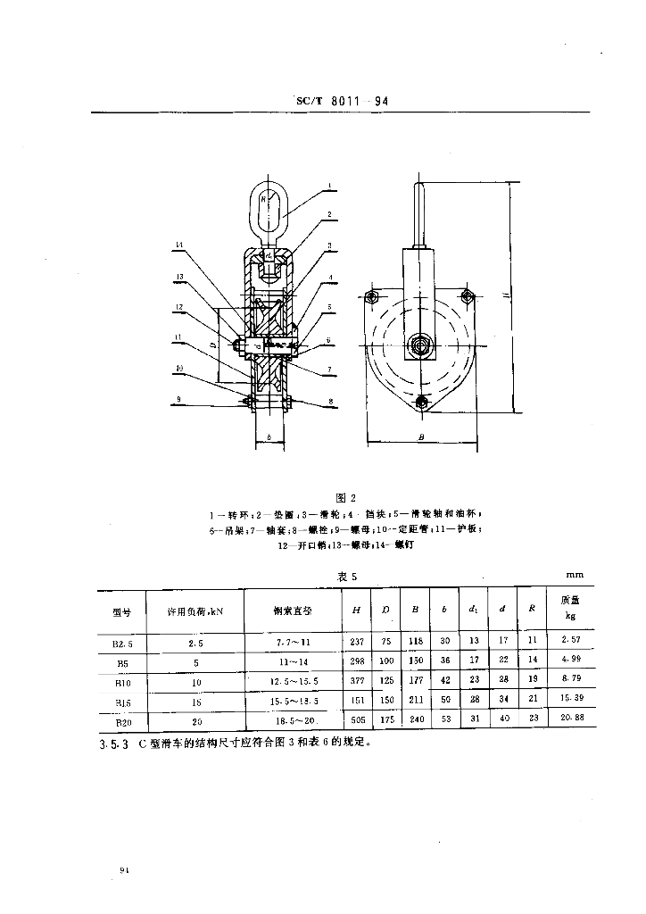 SC/T 8011-1994 渔船起重钢索滑车